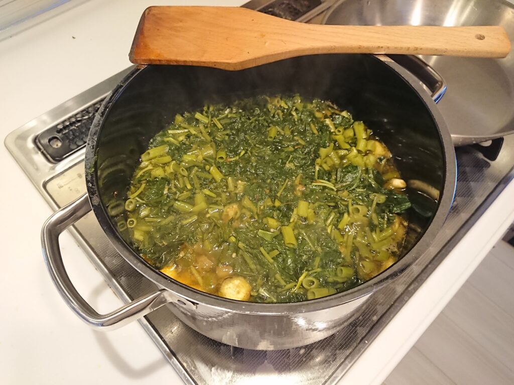 命の野菜スープの煮込みが終わり出来立てを飲みました。