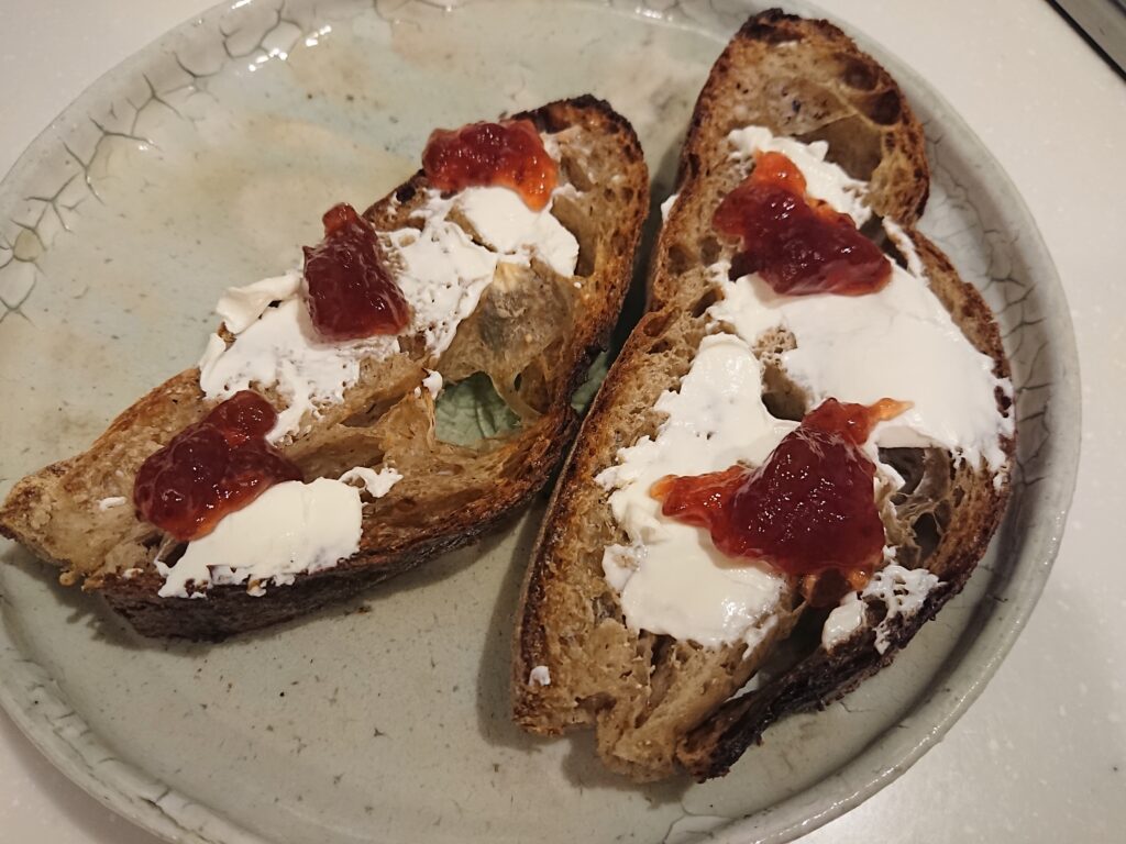 パンは福岡県のパンストックというお店の全粒粉パン、全粒粉じゃない方が美味しかったかもですが悪くありません。