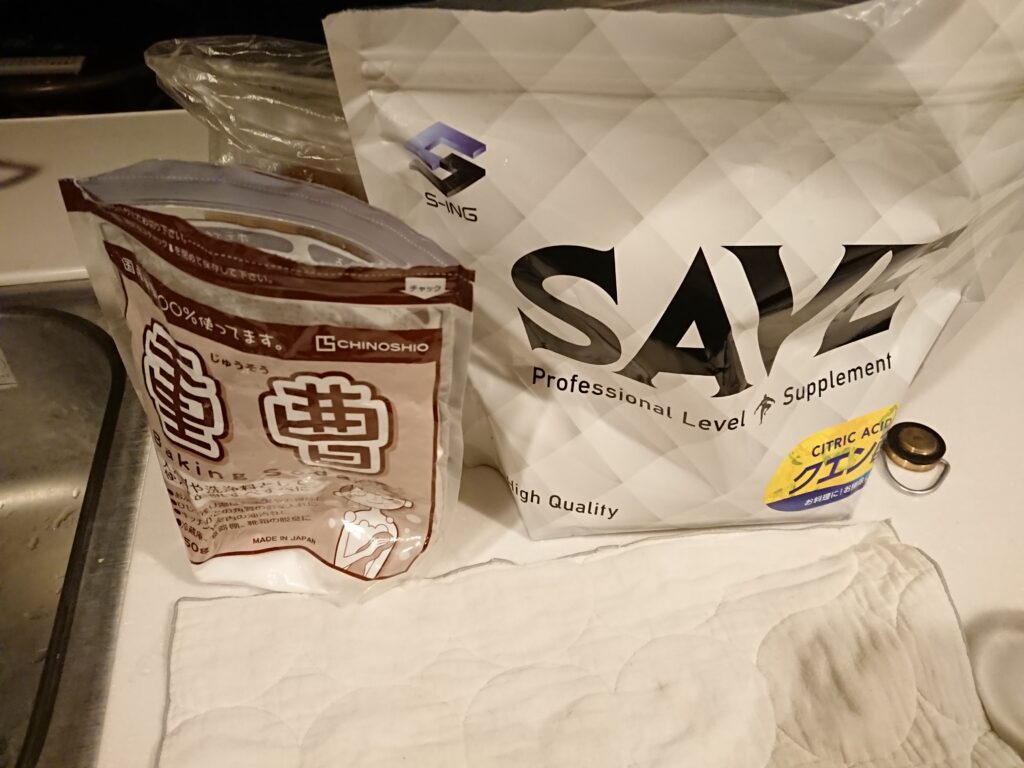 まずはお湯につかる事一時間、血液から不純物を放出、体をしっかり洗う、それから重曹水を飲んでみました。
