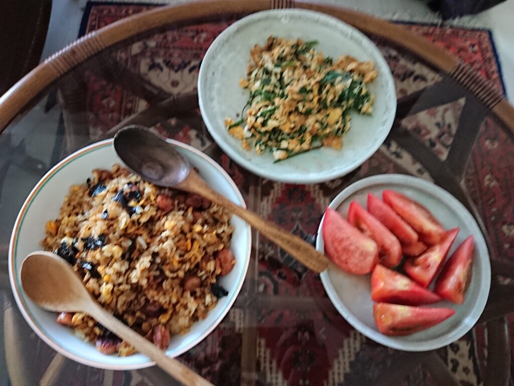 でも朝ご飯がトマトとニラ玉だけだと心もとないというか。