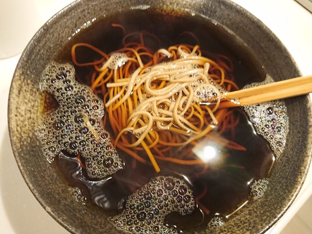 今夜も深夜蕎麦、先日は水が多過ぎたので少し減らし味醂も減らしました。